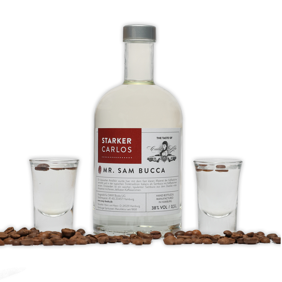 Ein klassischer Anislikör wurde hier mit dem fast klaren Mazerat der Kaffeebohne vermählt und in der typischen Trinktradition Italiens als Sambuca mit Kaffeebohnen serviert. Entstanden ist ein weicher, opulenter Anislikör aus dem Destillat wilder Anissamen mit feinen, delikaten Kaffeearomen. So lecker, dass dieser Likör unbedingt in die Reihe THE TASTE OF CARLOS KELLA aufgenommen werden musste. HAND BOTTLED & MANUFACTURED IN HAMBURG.